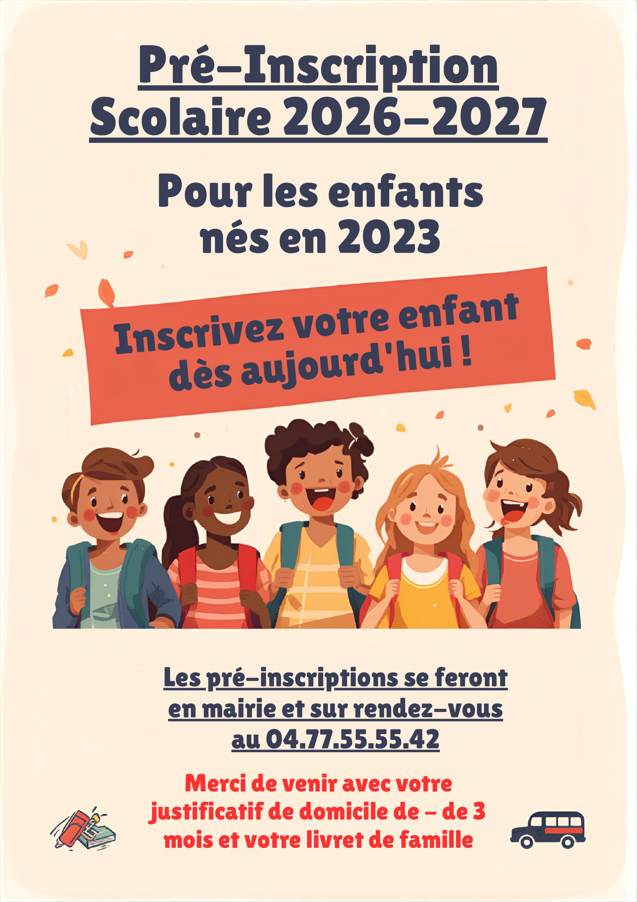 Pré-inscriptions Ecole Maternelle 2026-2027 (enfants nés en 2023)